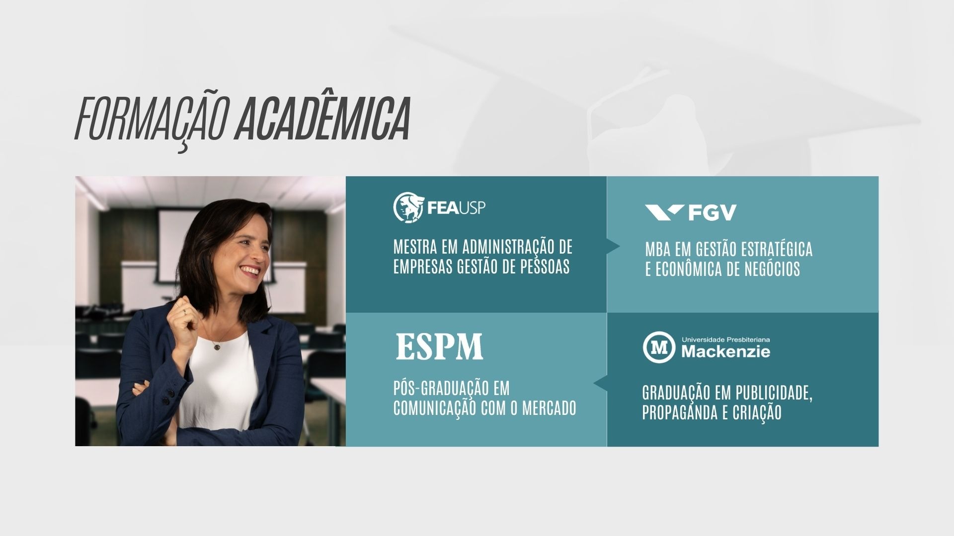 Diante disso, ela precisava de um material que ao mesmo tempo comunicasse seu profissionalismo e experiência, bem como oferecesse clareza sobre o tipo de serviço que oferece e detalhes sobre sua trajetória e qualificações.